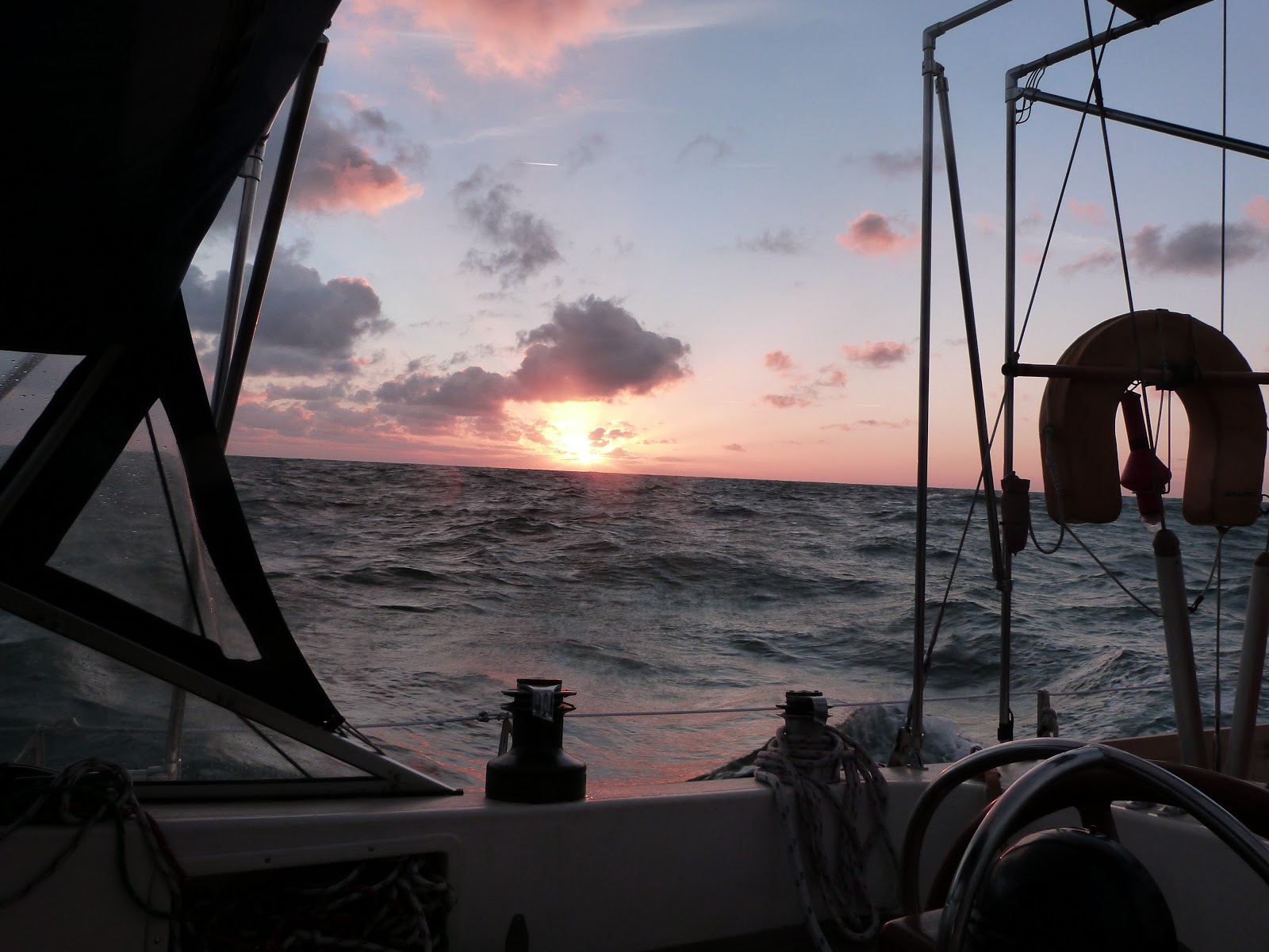 With a 4 pm departure, we motor into the wind and large swell for 3 hours and then turn left for Spain. Sails up for the next 30 hours and some nice sailing as winds and swell die.
